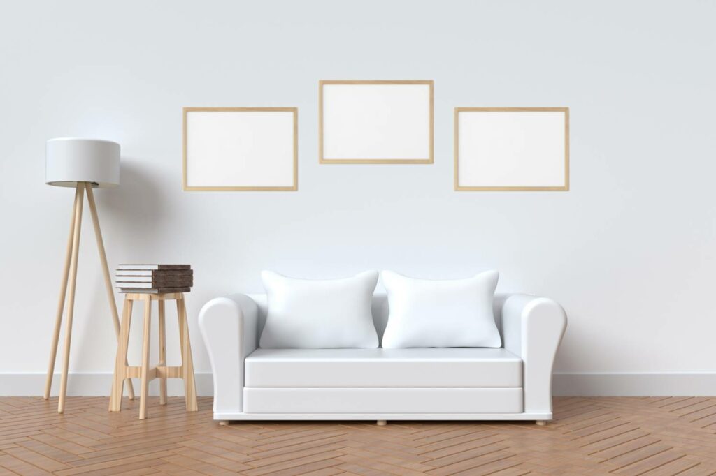 The examples shown here should give you a rough overview of the different hangings. Of course, these do not necessarily have to be the same formats. Of course you don’t necessarily have to arrange your 3 wall pictures above a sofa, but you can place them freely in the room.